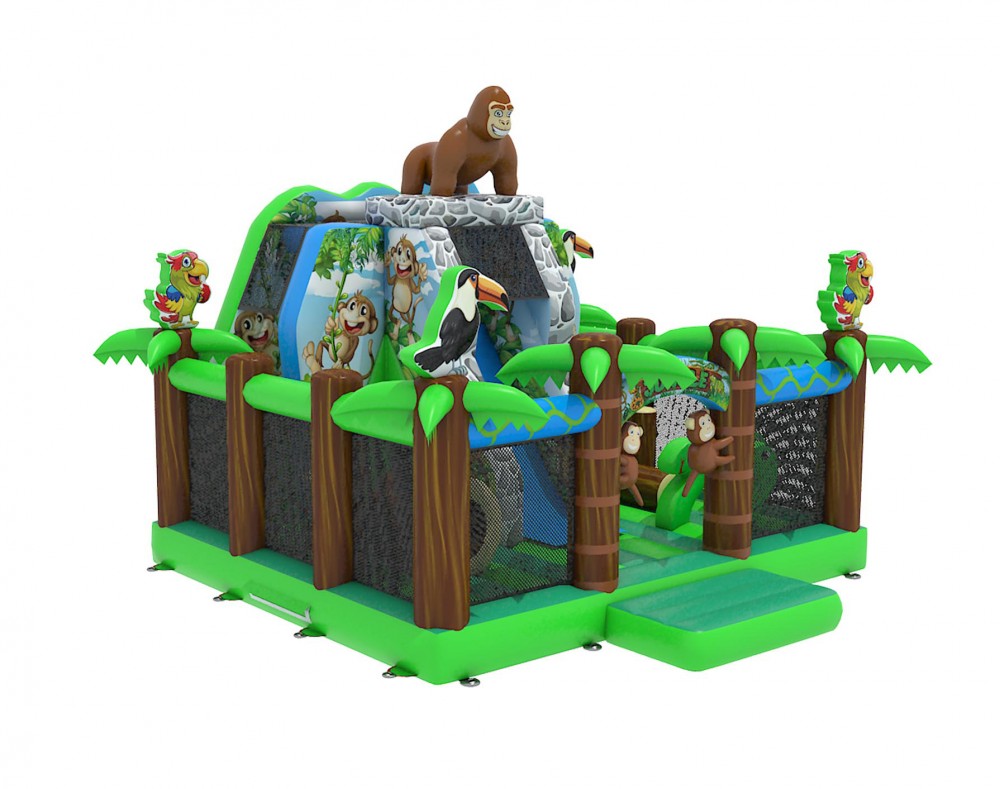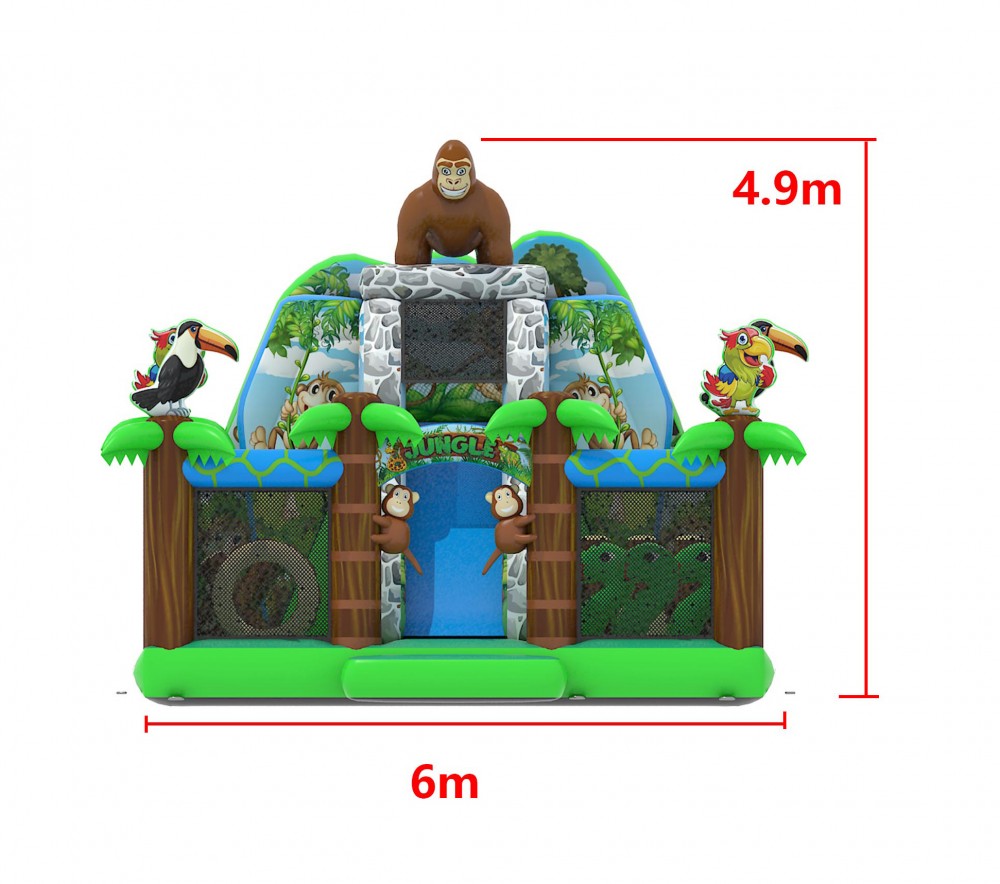 Ga op een wilde expeditie met ons avontuurlijke jungle springkasteel, compleet met een imposante gorilla die over de jungle waakt! Dit spectaculaire en kleurrijke springkasteel brengt kinderen naar het hart van de jungle, waar ze kunnen springen, spelen en klimmen te midden van de natuur. Met zijn indrukwekkende jungleontwerp en de machtige gorilla bovenaan, biedt dit springkasteel eindeloos plezier voor kinderen van alle leeftijden. Ontdek de geheimen van de jungle en beleef een onvergetelijk avontuur vol fantasie en opwinding. Perfect voor verjaardagsfeestjes, evenementen en speelafspraken!