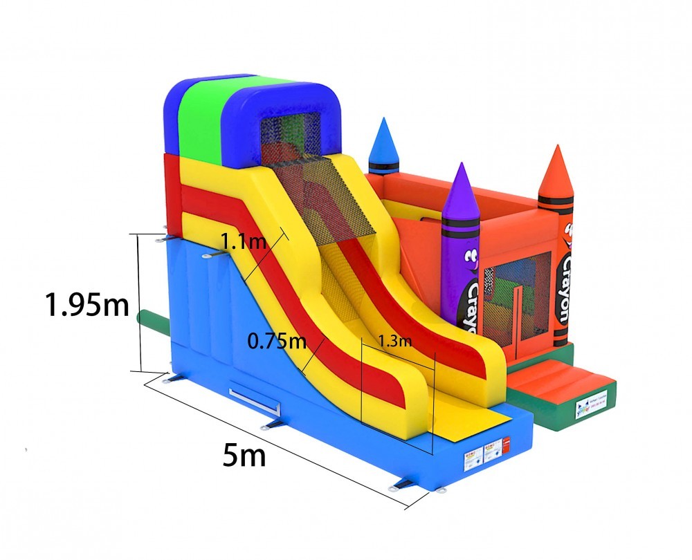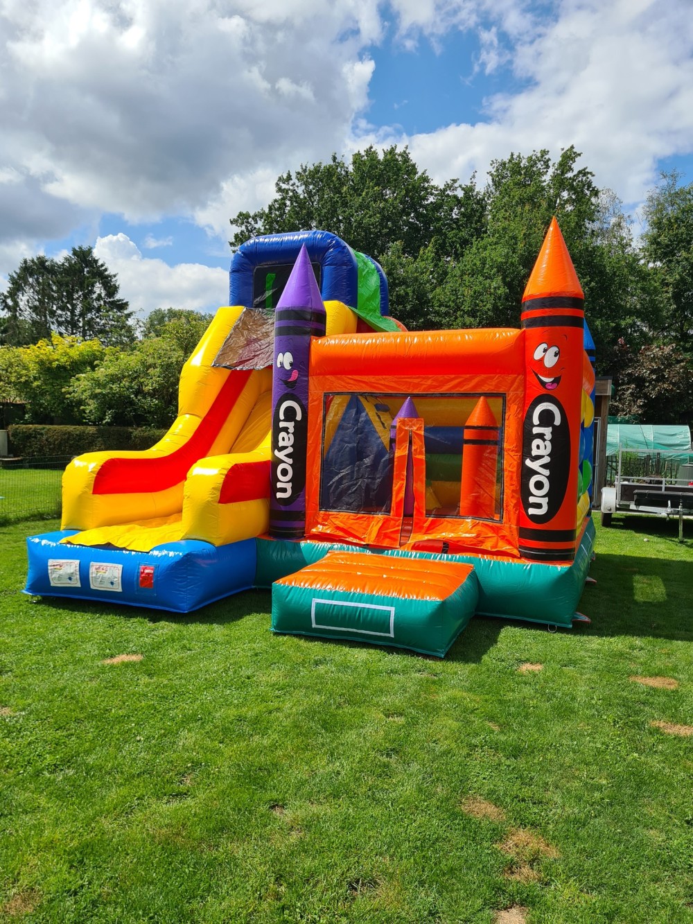 Stap binnen in een creatieve wereld vol kleur en fantasie met ons levendige crayon springkasteel! Dit unieke en kleurrijke springkasteel nodigt kinderen uit om te springen en spelen tussen gigantische crayon stiften in alle kleuren van de regenboog. Met zijn vrolijke crayon ontwerp en speelse gekleurde muren, biedt dit springkasteel eindeloos plezier voor kinderen van alle leeftijden. Teken, spring en klim in dit artistieke opblaasbare kasteel en beleef een onvergetelijk avontuur vol creativiteit en verbeelding. Perfect voor verjaardagsfeestjes, evenementen en speelafspraken!